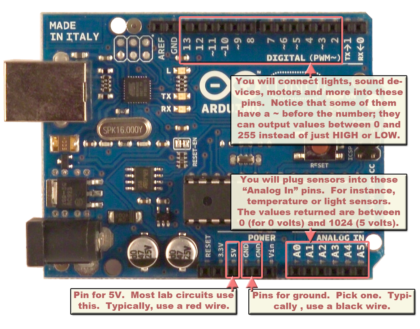 Image from this great tutorial: http://www.cs.uregina.ca/Links/class-info/207/ A more detailed diagram of the Arduino http://pighixxx.com/unov3pdf.pdf