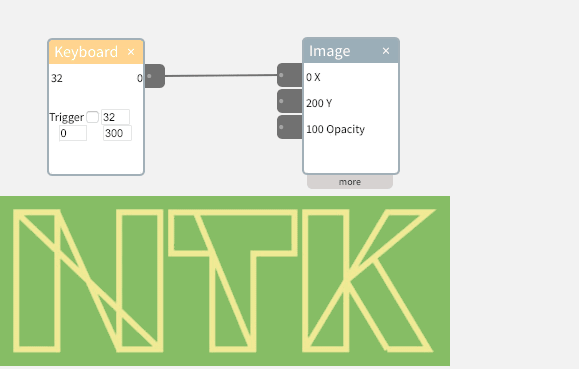For example, if the space bar is pressed, a 32 will be output. If the lowercase “a” is pressed, 65 will be output. But if the “Trigger” box is checked and the number is set to 32, then normally the widget will output 0, and only when the space bar is pressed, will it output 1023.