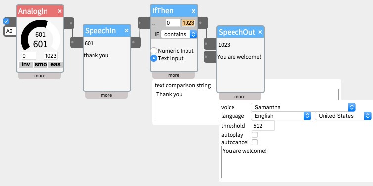 SpeechOut Synthesize audio speech from text input The SpeechOut widget receives text and performs speech synthesis to output audio. It supports multiple voices and languages.